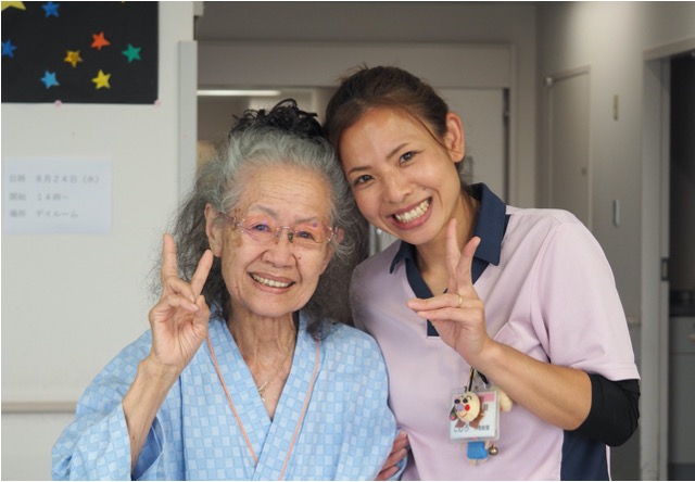 病院での経験がない介護職が多いですが、患者さんにとって一番近い、安心出来る存在を目指して日々のケアやレクリエーションと関わりを大切にしています。